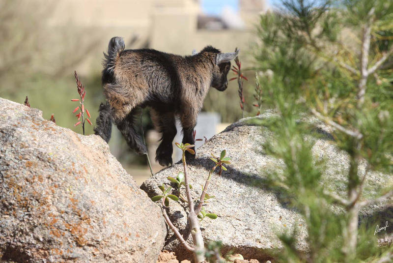 Delta tired after a long day of playing with the goats